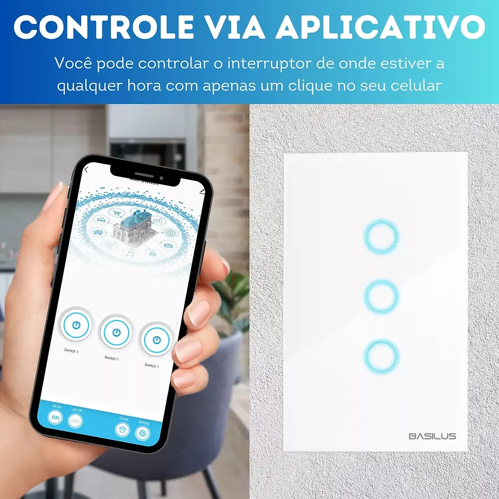 Interruptor Inteligente Basilus Touch 3 Botões Wifi Smart Tuya Alexa